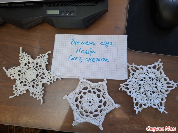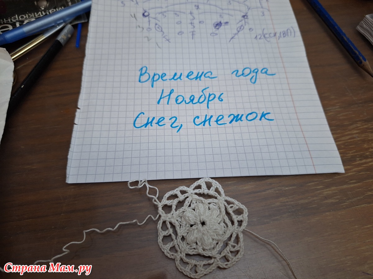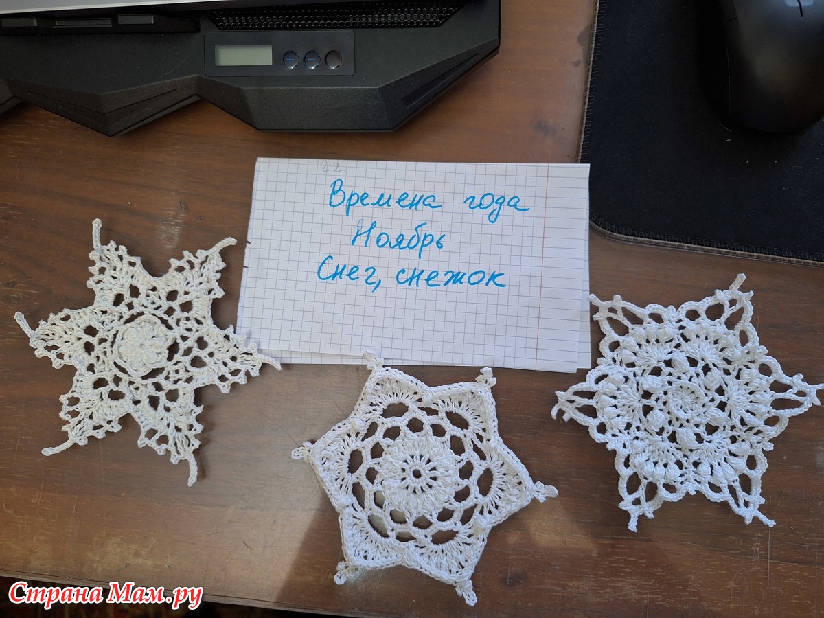 Времена года. Ноябрь. Снежинки крючком