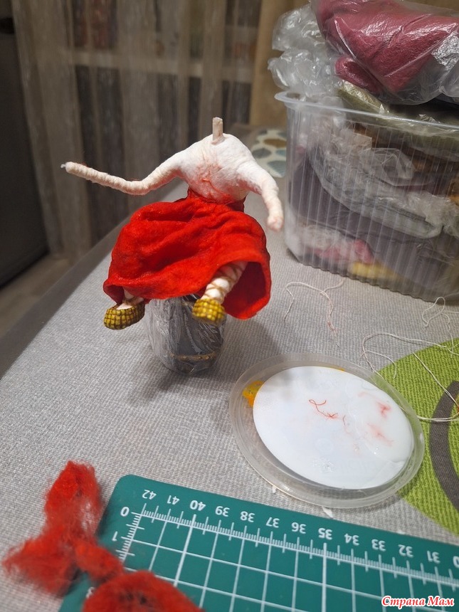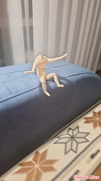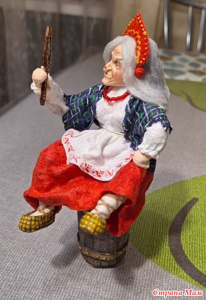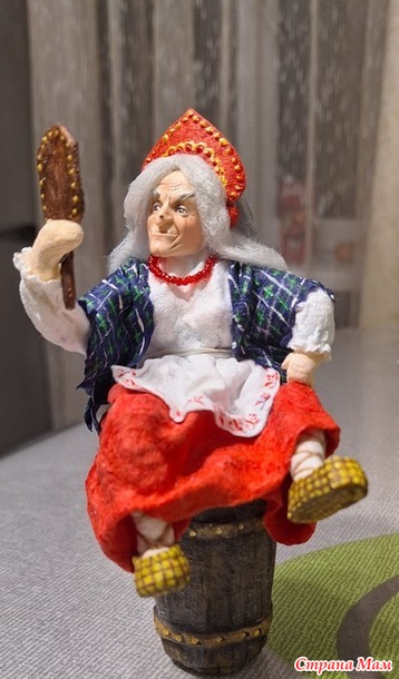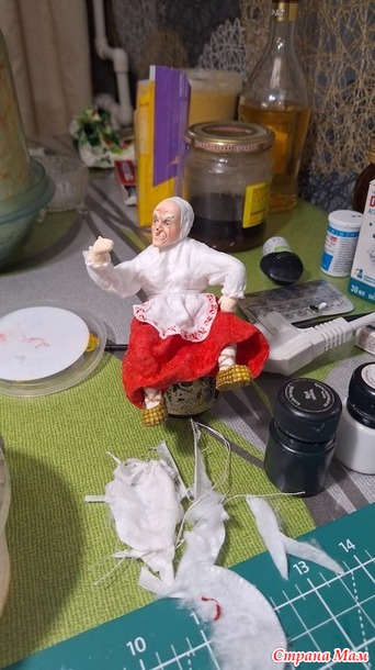 Готова моя красоточка. Вместе со ступой около 20 см. Проволочный каркас, льняная и хлопковая вата, акриловые краски, зефирная пластика, лак.