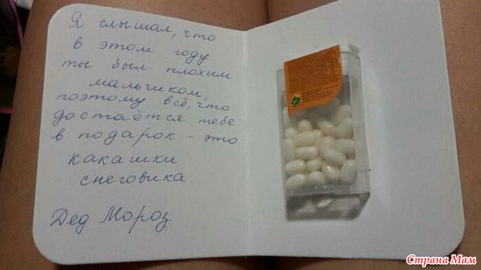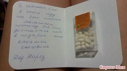 Кстати так часто происходит. Хорошо хоть какашки снеговика ни кто из родителей не клал в мешок , чтоб детям подарить.