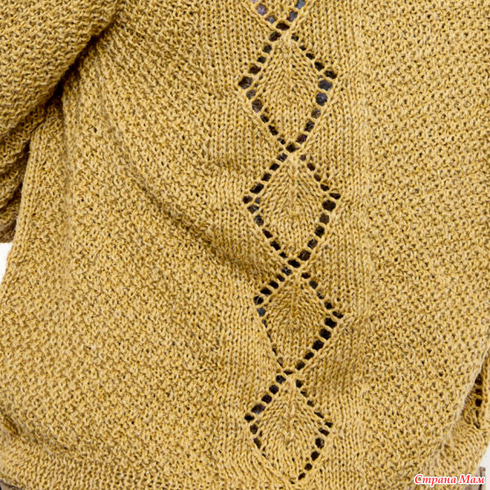 Плотность вязания: 24 п. х 28 р. = 10 х 10 см, связано жемчужным узором на спицах № 4.