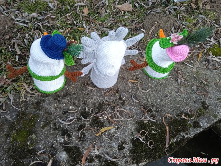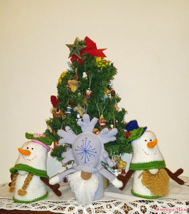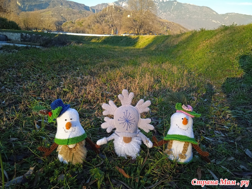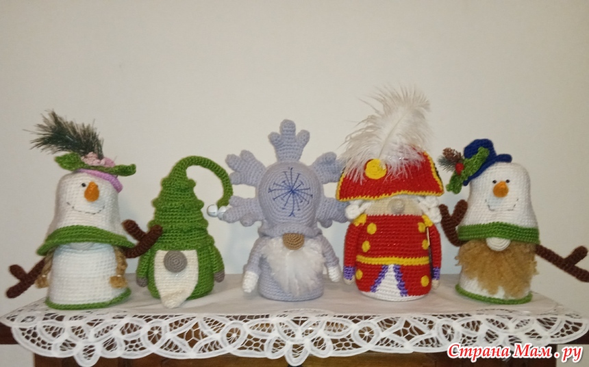 Игрушки связаны из акриловой пряжи, крючки 3.5/4/5. Высота без шляпок и лучей 21-22 см.