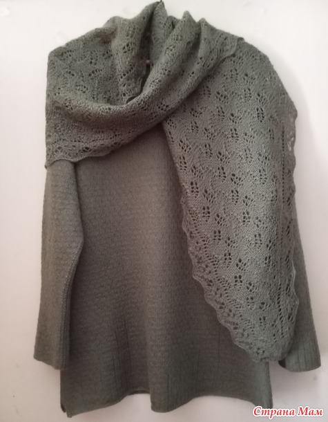 От пуловера остались ниточки, и как раз попалась такая шаль