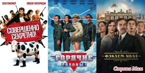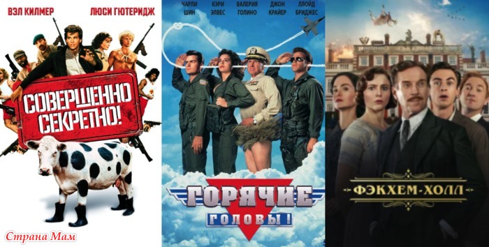 Первый фильм Совершенно секретно, по-моему начала 90-х, Горячие головы чуть позже появились (вроде даже не один фильм), но, я видела только первый. И вот, в этом году вышел Фэкхем-Холл (Великобритания), это пародия на всем известный - Аббатство Даунтон и прочие сериалы.