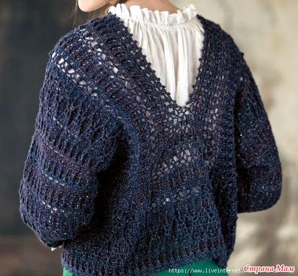 Ажурный пуловер в основе которого прямоугольник. Крючок.