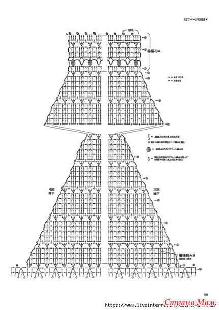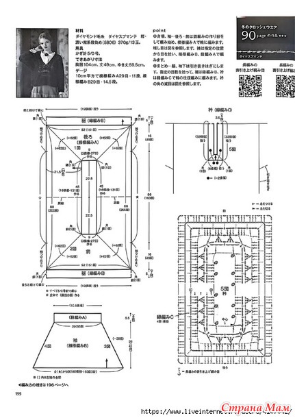 Основная часть, рукава... Начните с набора крестиков на спинке и переде, затем провяжите узорчатой вязкой А в качестве основы. Обратитесь к схеме для прибавления петель. Для рукавов наберите петли из указанного положения и провяжите узорчатой 3;вязкой, а затем провяжите лицевыми.