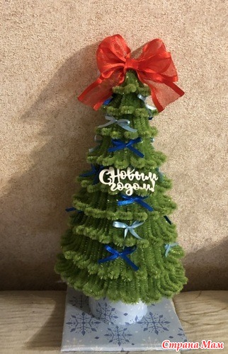 В конкурсе Мегаконкурс Новогодний 2025 решила сделать елочку с секретом из синельной проволоки.