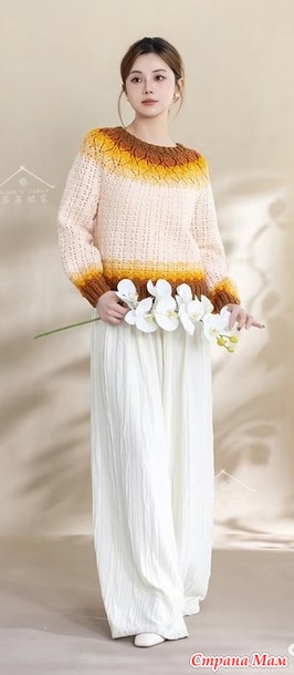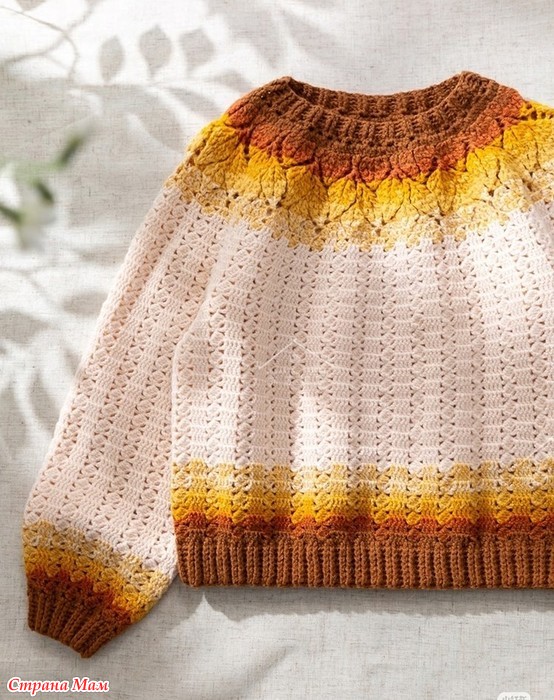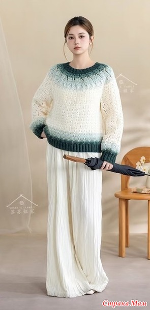 Нежный джемпер с круглой кокеткой из растительного узора.