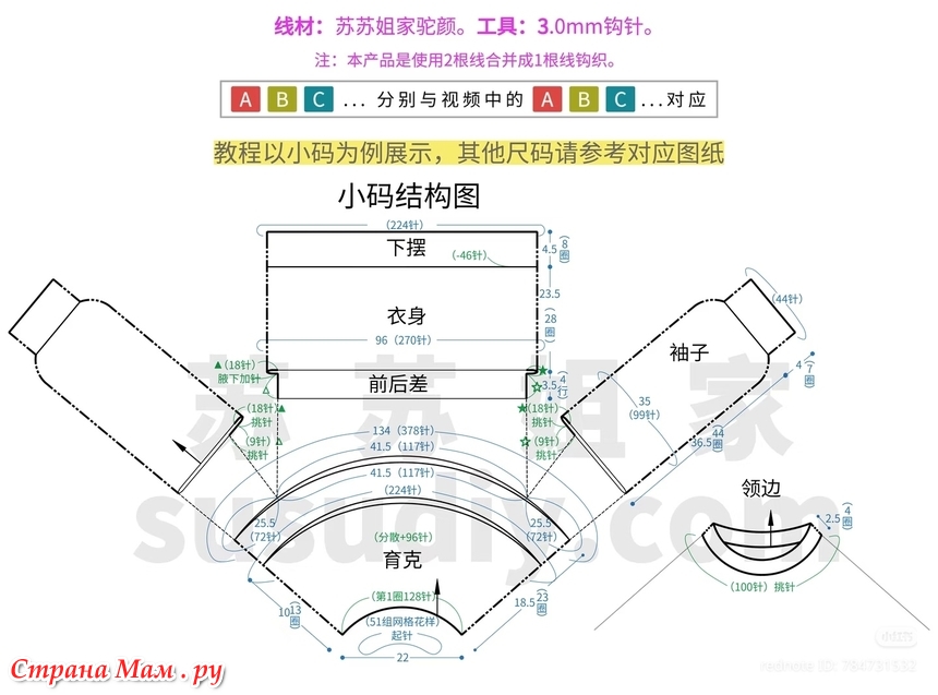 В этом руководстве в качестве примера используется маленький размер; для других размеров, пожалуйста, обратитесь к соответствующей выкройке.
