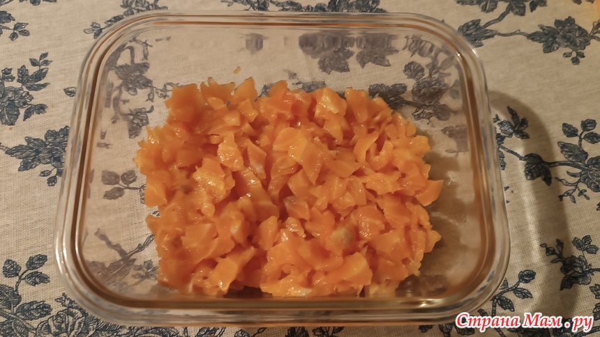 Лосось нарезала квадратиками (были пластинки, кубики не получились