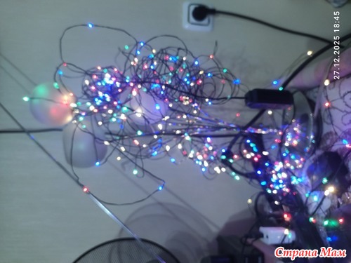 А чтобы с гирляндой не драться, нужно ее сматывать на катушку. Иначе такая тонкая гарантированно спутается. Но клубок получился атмосферный )))