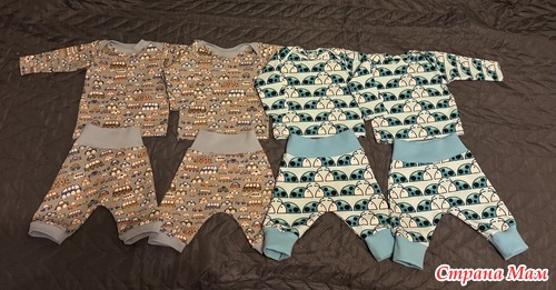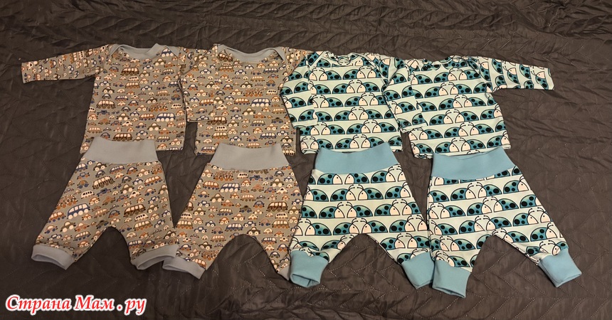 У меня в оверлоке голубые нитки, поэтому шила костюмчики очень маленьким парням