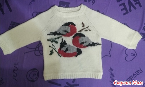 Жилет для сына, джемпер со снегирями внуку, футболка из линен софт себе. Вяжу на машинке рубашку, проба пера так сказать. Детали связала, впереди планки, шлицы, воротник. И себе джемперок из носочной пряжи Нако бохо"Ягодное ассорти".