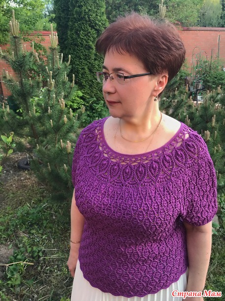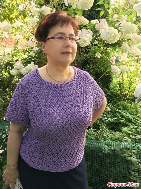 9. Блуза «Амели» крючком связана в рамках тестирования у Лилии Коробейниковой