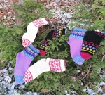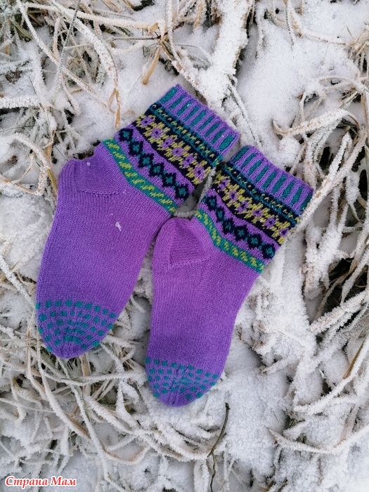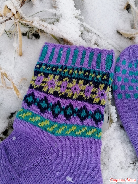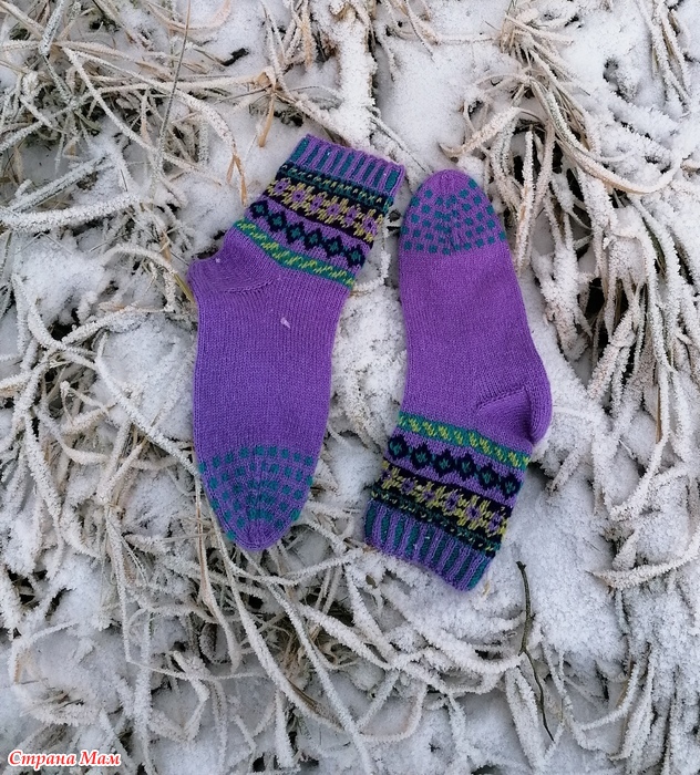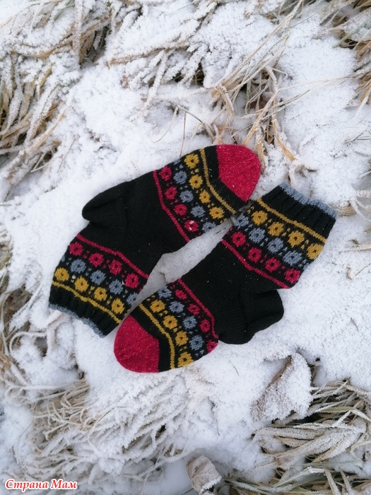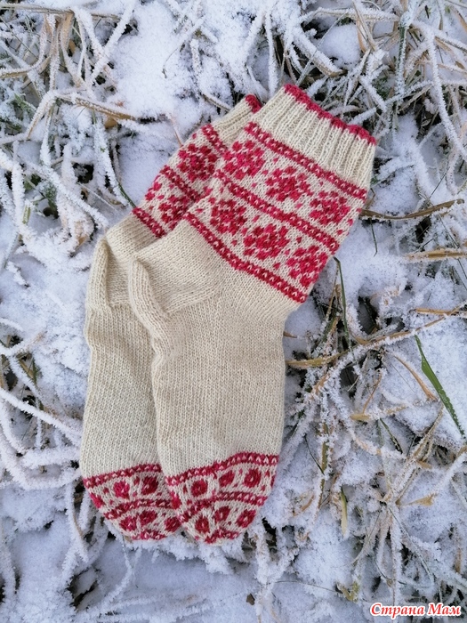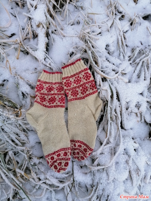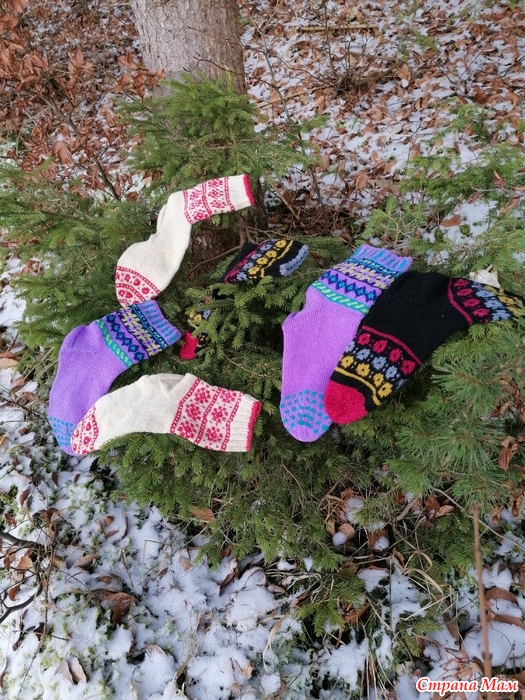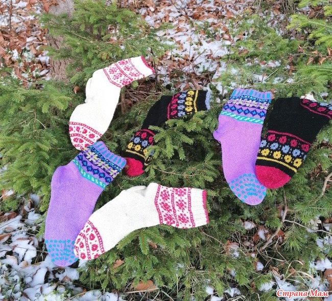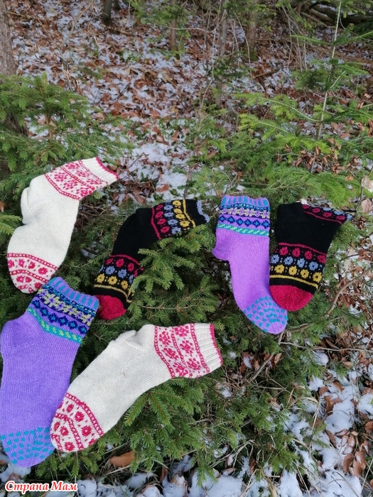 Отфотографировала прошлогодние носки. Пряжа разная, и дундага и шетланд и даже люрекс в подмоте к тем, что с красным орнаментом. Спицы 2.5