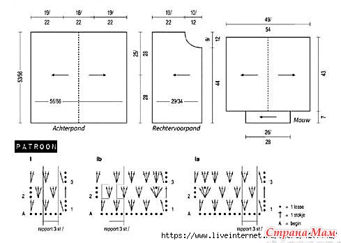Узор Ib: петля № 7, прибавка петель на горловине с лицевой стороны, согласно схеме вязания крючком.