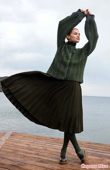 Ажурный кардиган цвета мха. Крючок.