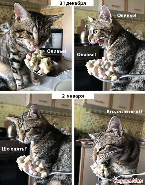 Даже котик поел. Только маринованные огурчики вытащила.