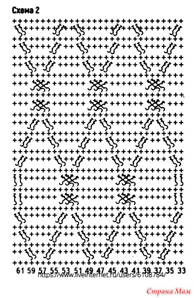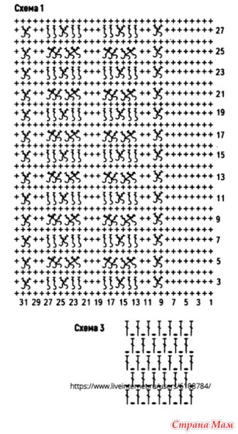 2-54-й ряды: вяжите по схеме 3. Второй рукав свяжите аналогично.