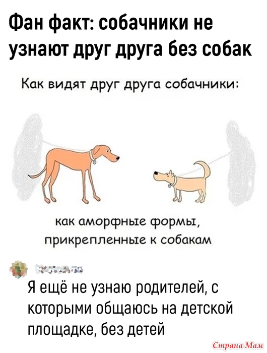 У меня собаки не было. Но часто случалось, что встречаю человек, лицо знакомое, но не знаю кто он. И через несколько минут догадываюсь, что это хозяин пекинеса или таксы или какой-то другой собаки.