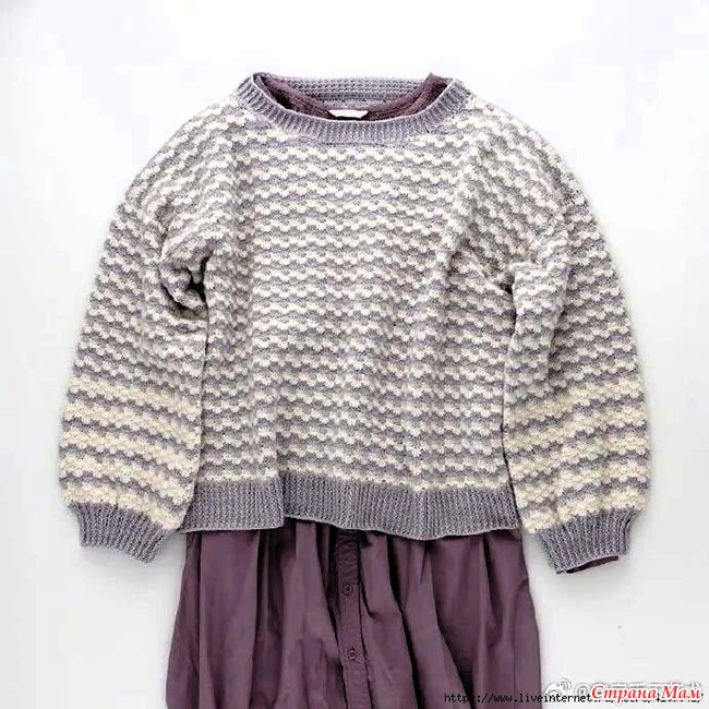 Полосатый свитер с пышными рукавами. Крючок.