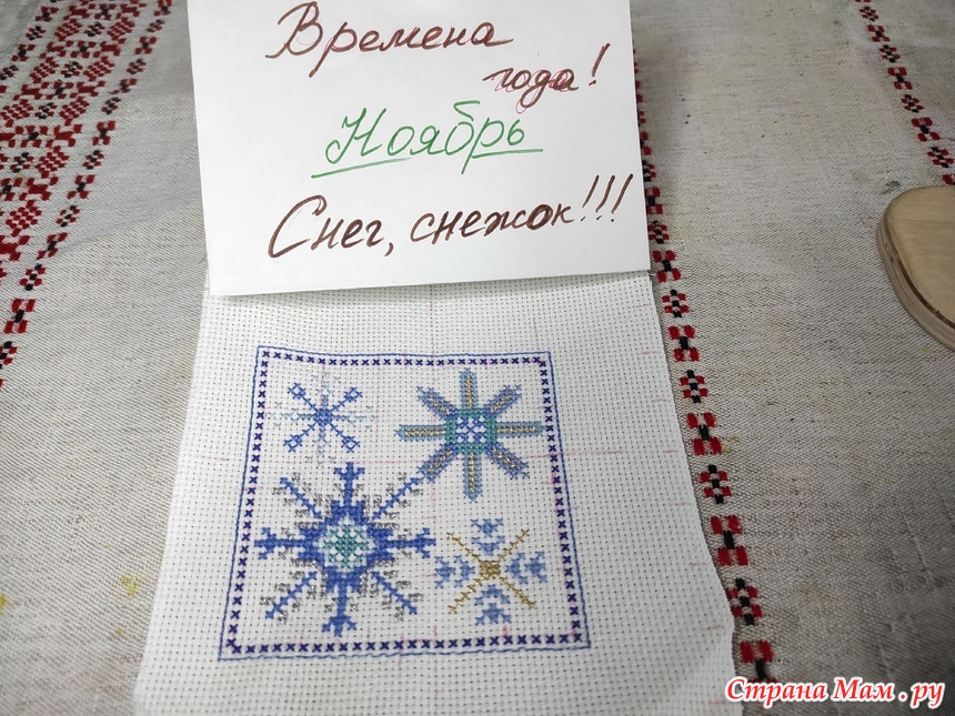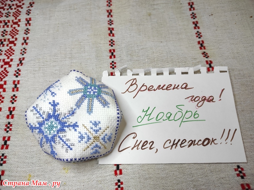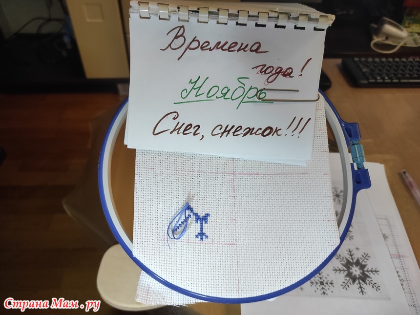 Привет всем! надеюсь еще не поздно. Мой отчет за ноябрь. Как-то долго вышивались снежинки. И еще дольше думала, а что-же с ними сотворить. В итоге снова бискорню. Вот фото от материалов, начала работы и до готовой работы.