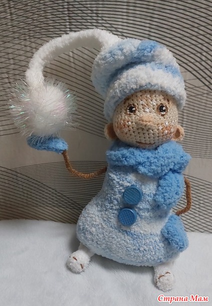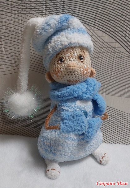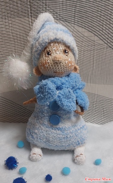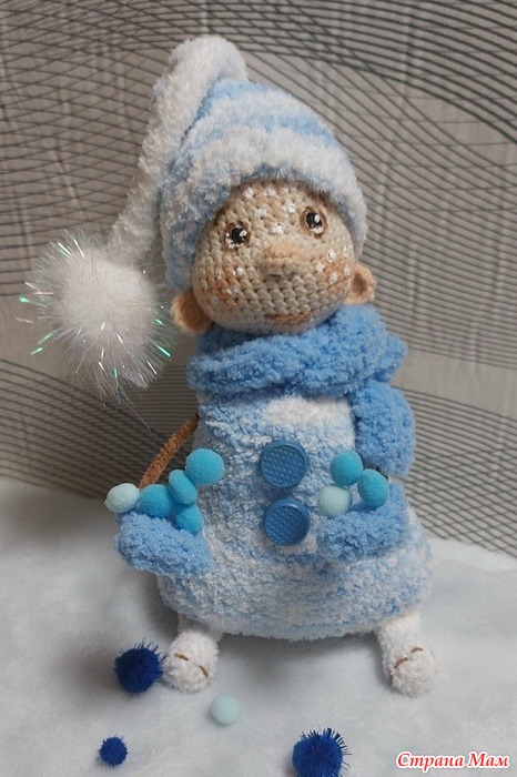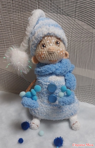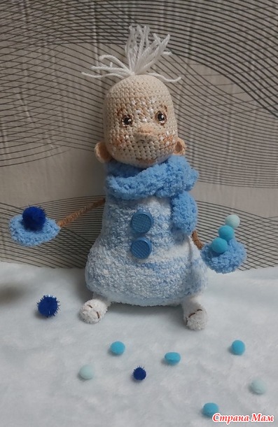Когда я увидела МК Елены Шаповаловой по Снеговичку,то сразу для себя решила-свяжу обязательно!. Ну а когда ещё на глаза попался остаточек пряжи софти ,подходящей расцветочки,то работа у меня "закипела"