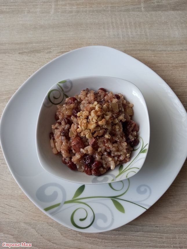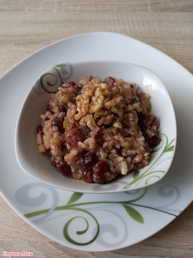 А типа такого (не совсем) я ела в детстве и называлось блюдо - фруктовый суп. Это когда рис отваривался в компоте из сухофруктов с изюмом. Но это реально был жидкий суп в тарелке, слегка сладкий, из гущи рис с сухофруктами, тёплый.