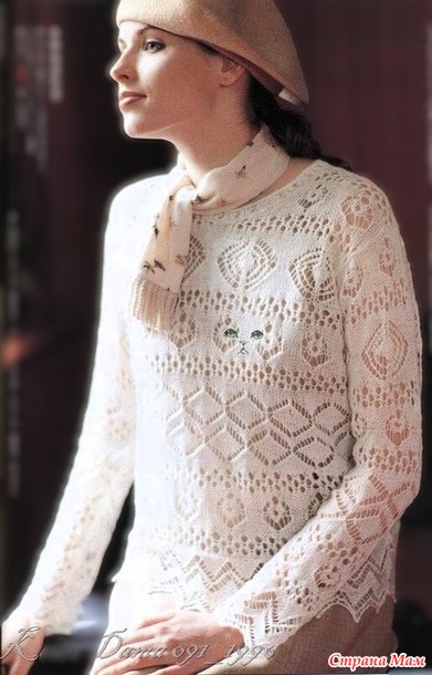 Изящная, нежная кружевная туника связанная шетландскими узорами. Спицы.