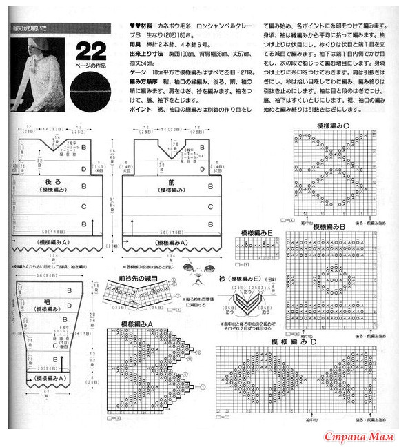 Плотность вязания: квадрат 10 см, все узоры рассчитаны на 23 петли и 27 рядов.