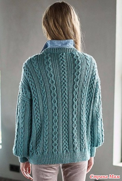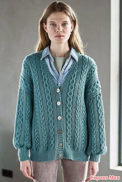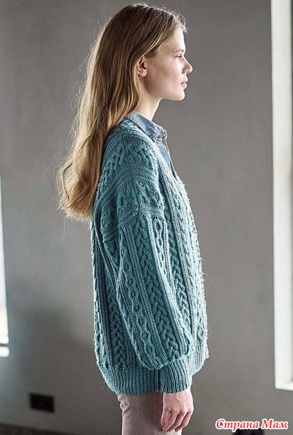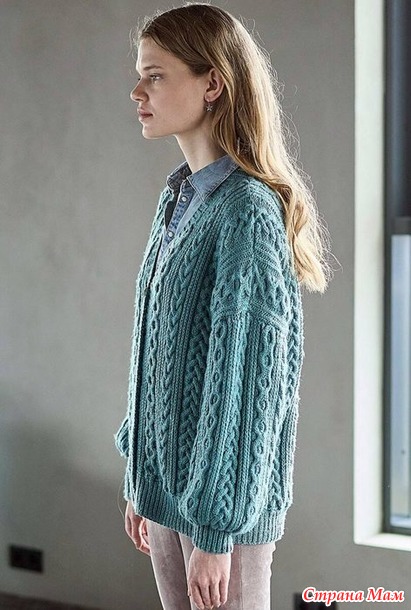 Кардиган оверсайз с разнообразными косами. Спицы.