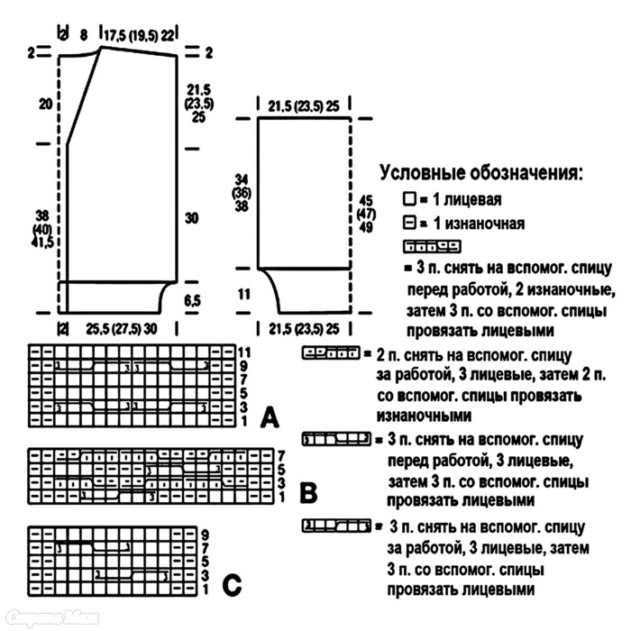 «Коса» в форме сот на 18 п. Вязать по схеме А.