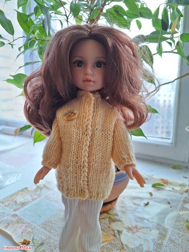 Пальто для куклы с брошкой с рябиной
