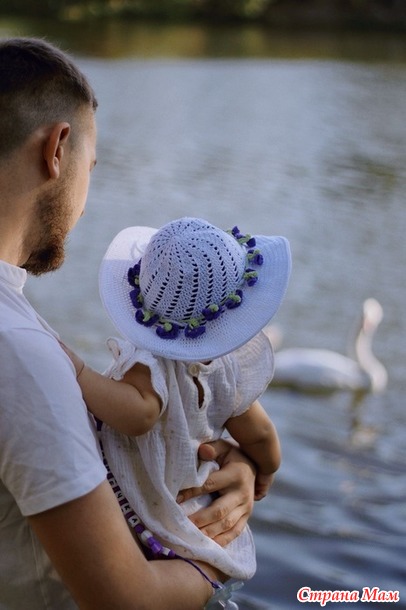 Внучка в шляпке привлекала внимание, наверно очень необычно для малышки.