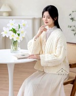 Теплый кардиган крупным рельефным узором. Крючок.