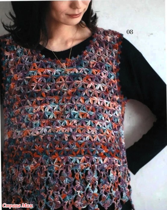 Меланжевая безрукавка цветочным узором. Крючок.