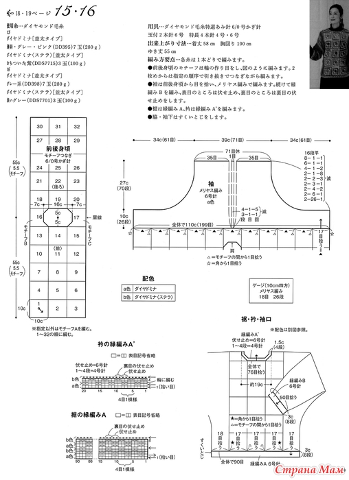 Инструменты: специальные спицы для вязания пряжи Diamond № 7-8, крючок № 6/0.
