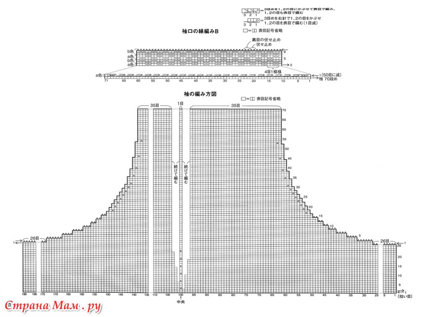 Для рукавов наберите петли с передней и задней частей изделия и провяжите лицевой гладью. Затем провяжите кромку B, нижний шов B и нижний шов B.