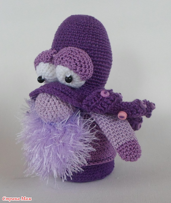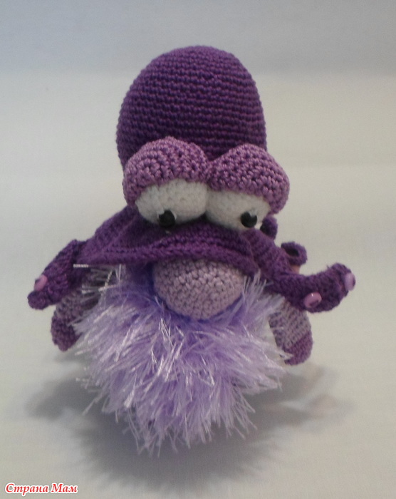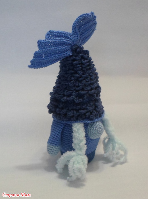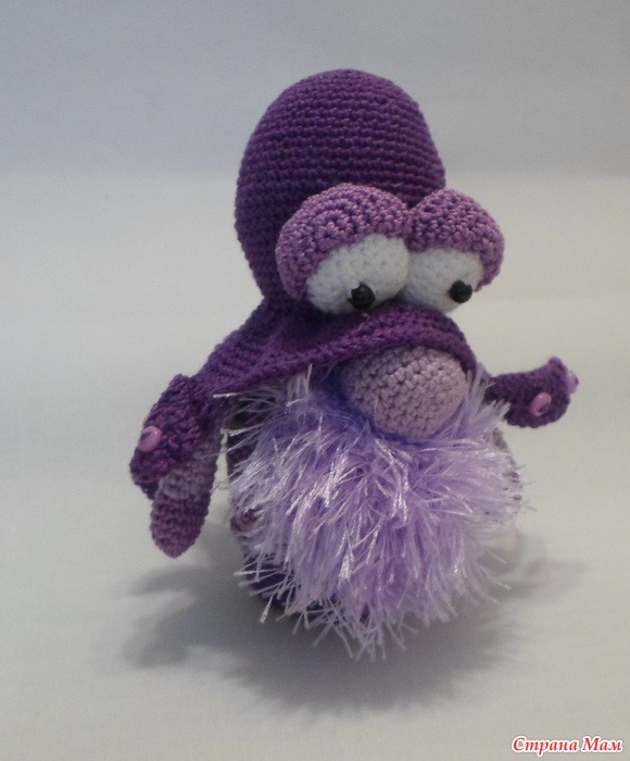 Потом увидела в сети гнома оссьминога и решила что он мне НАДО. но не представляла как к нему приступиться! И таки да-повозиться с ним пришлось...Эта шляпа со щупальцами чуть с ума не свела-то узкие,то не закручиваются куда надо!