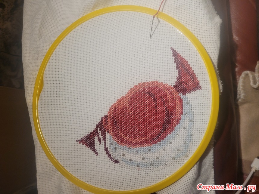 Вышивается никами мулине, крестиком в 2 сложения, и оформляется биссером.