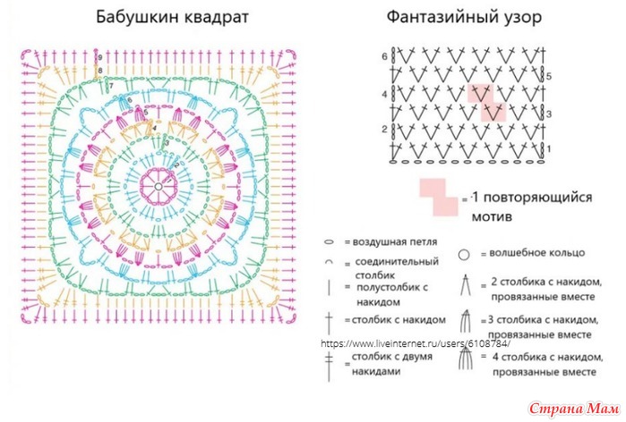 ВЯЗАНИЕ МОТИВА (БАБУШКИН КВАДРАТ)