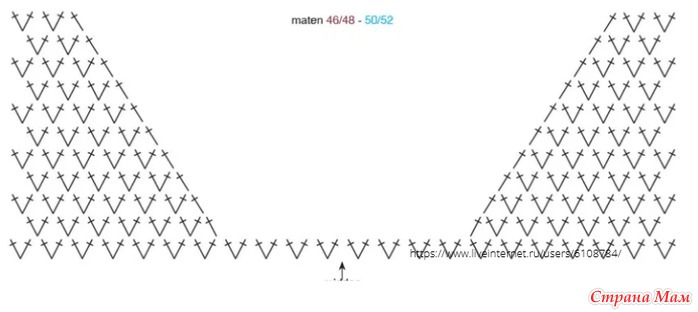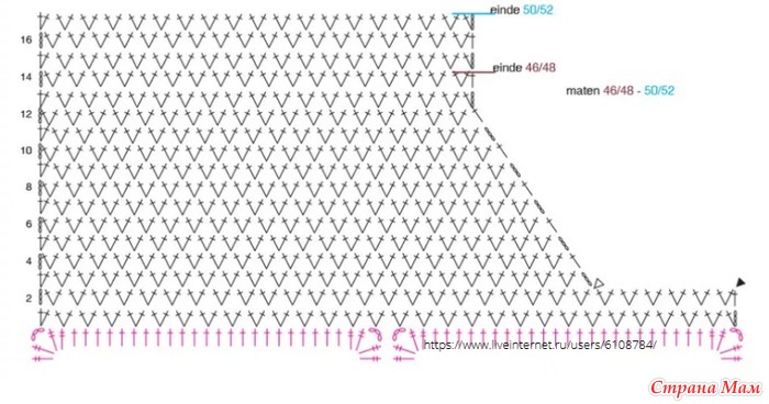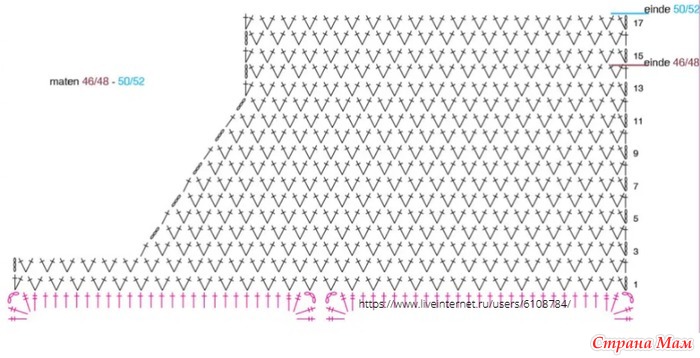 o В 1-м ряду: 60 - 62 - 62 - 66 - 66 ст. с/н. o Провяжите: 8 - 9 - 10 - 10 - 11 рядов.
