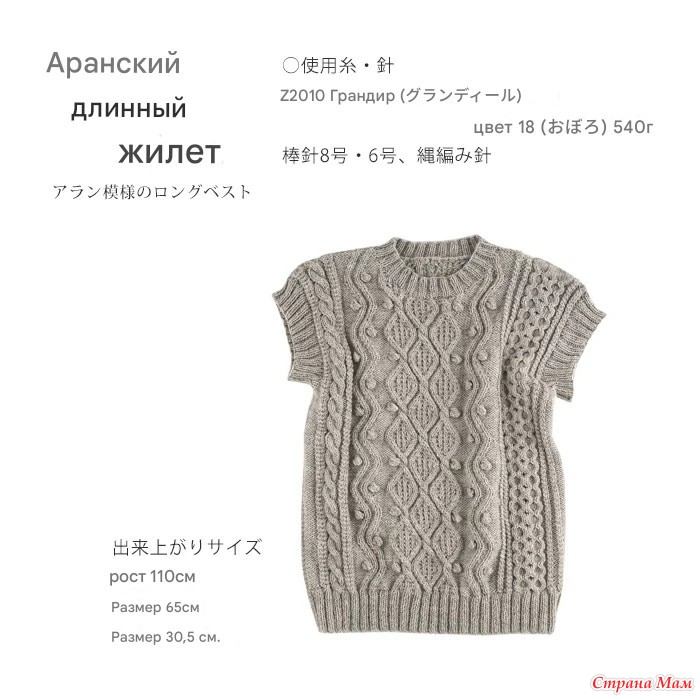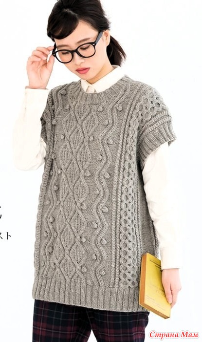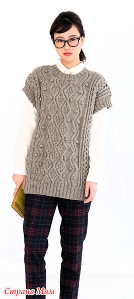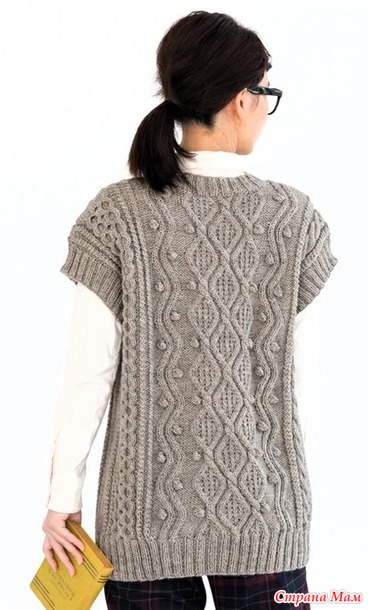 Длинный жилет с узором араны. Спицы.