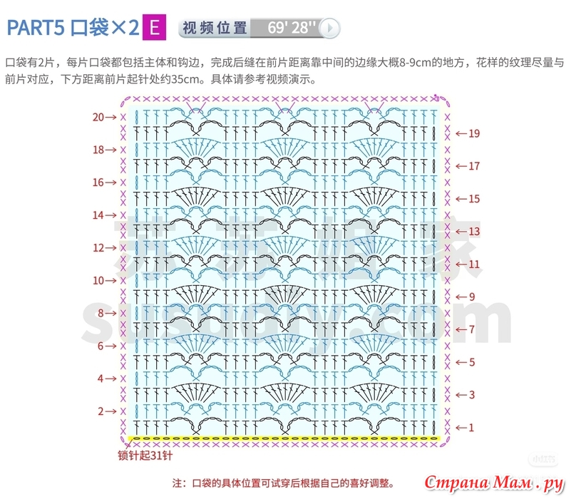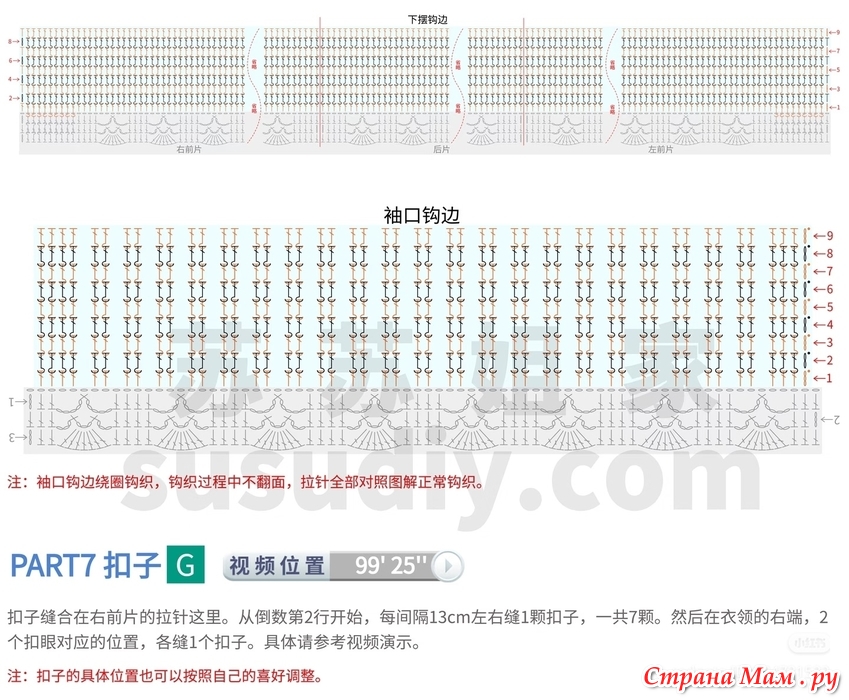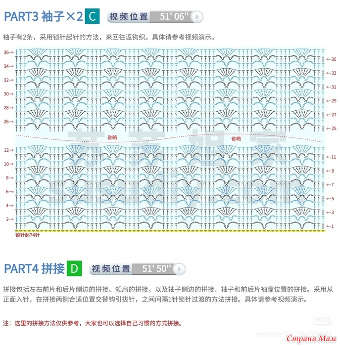 Примечание: 1. В этом изделии используется меланжевая пряжа. В действительности меланжевая пряжа имеет несколько цветовых сегментов. Эффект готового изделия будет отличаться в зависимости от цвета, с которого вы начали вязание. Вы можете ориентироваться на готовое изделие или выбрать соответствующий цвет меланжевой пряжи для начала вязания крючком в соответствии со своими предпочтениями.