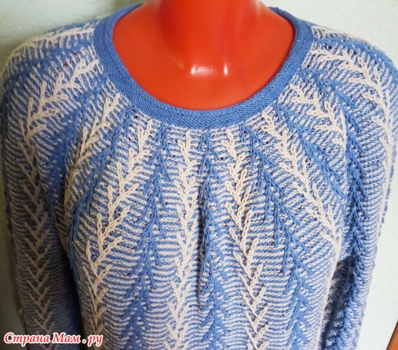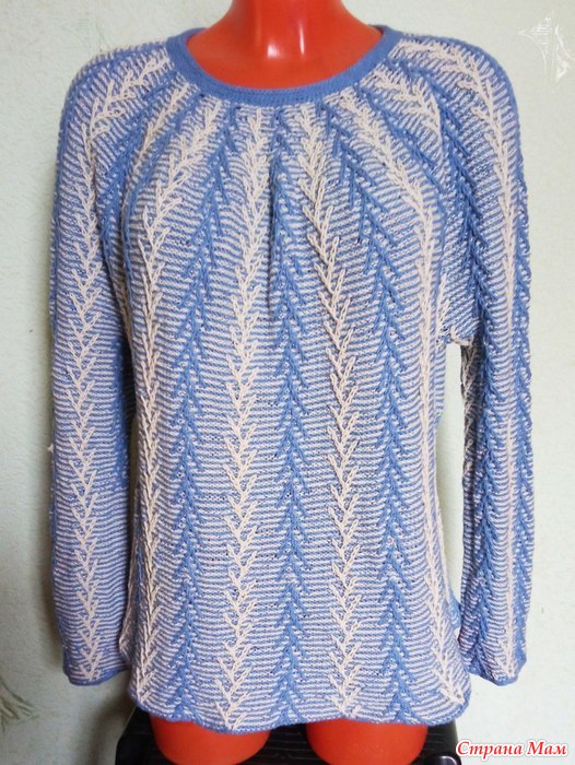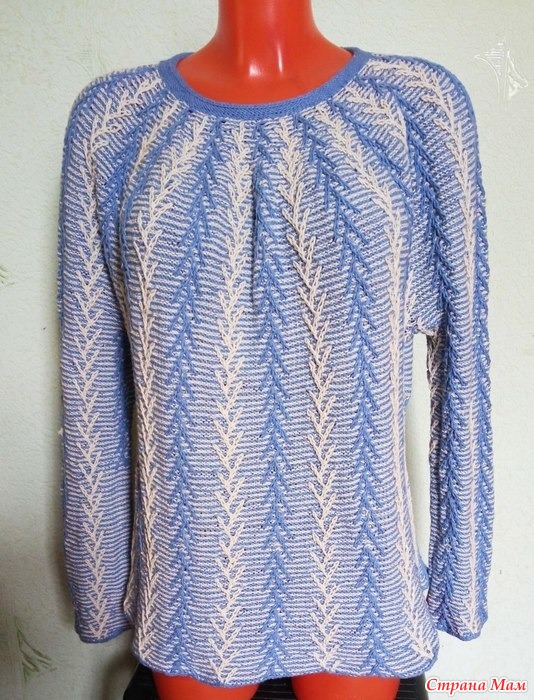 Пересчитала на свою плотность, а также решила, что мне нужен длинный рукав, так как моя пряжа потолще и на лето будет жарковата.