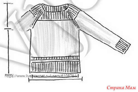 73 (79, 85, 87, 91, 97, 99) пет для Переда и для Спинки, 45 (49, 55, 55, 59, 63, 67) пет каждого рукава, 5 пет каждой регланной линии