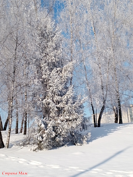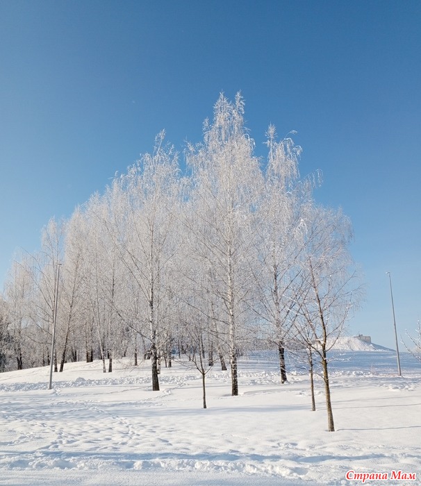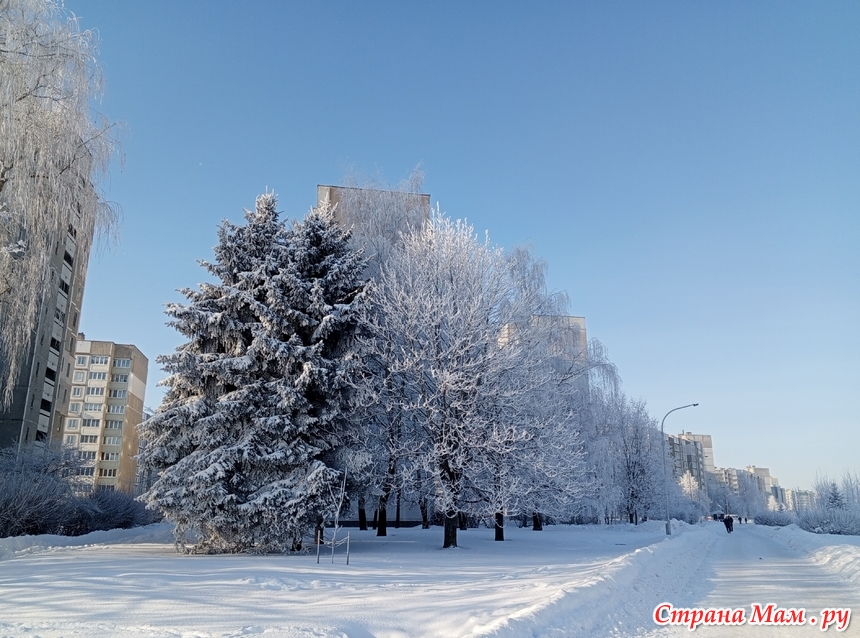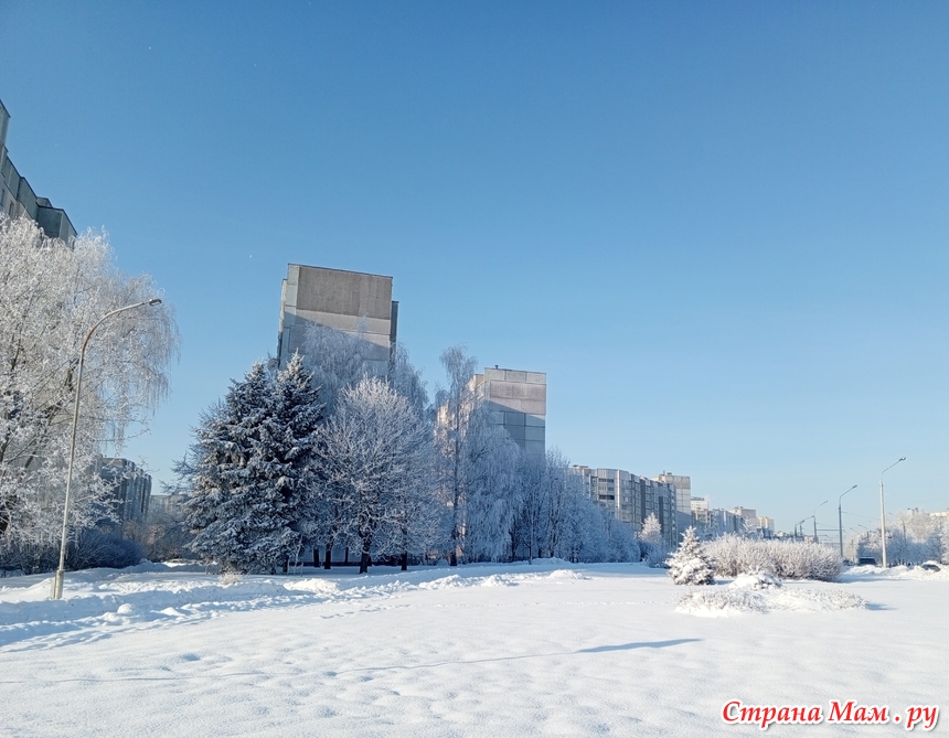 У нас несколько дней стоит настоящая зимняя погода. Мороз и солнце. Утром было -26, днём -18. Ветра нет, небо изумительного цвета. Фотографии одной из улиц Минска.