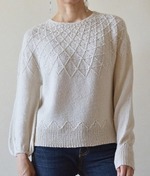 ”White Lizard” – это пуловер с круглой кокеткой с постепенно нарастающим узором с ромбами. Вы можете выбрать длину рукава из двух вариантов – 3/4 или длинный.