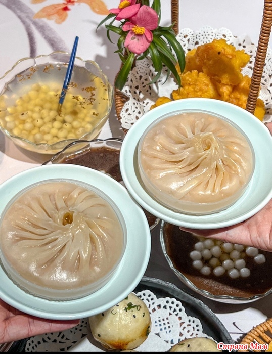 Из твоего хотела бы попробовать баоцзи с крабом, очень интересное сочетание свинины с креветками. Ну, и сладости. Хотя я очень люблю пробовать новые необычные сочетания, вот только что приготовила чернослив в беконе на завтрак.