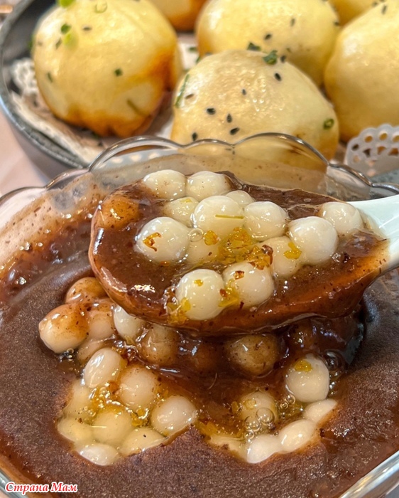 Каша из красных бобов с рисовыми шариками и цвтами османтуса