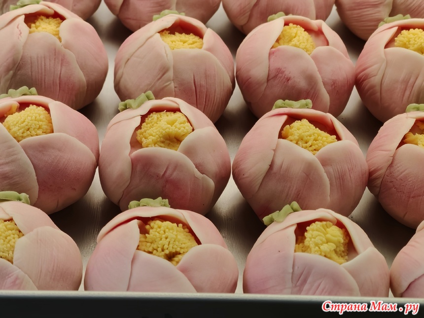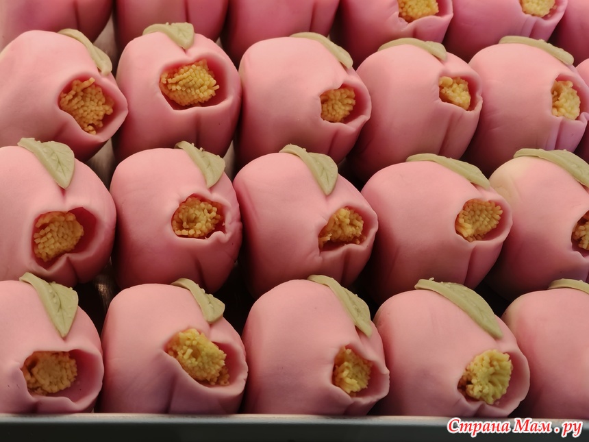 Помимо изысканных начинок кулинары с предлагают пирожные в форме персиков, цветов лотоса, царевны лягушки....